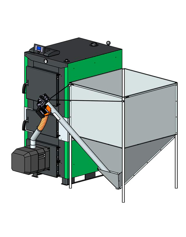Основным топливом, который сжигается в автоматическом режиме, является пеллет, а также агро-пеллет (пеллет из рапсовой соломы или шелухи подсолнечника, зерно, семена, кукуруза) размером 6-8 мм.