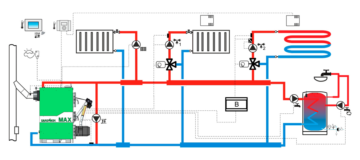 Котел SAKOVICH PELLET MAX - это современный мощный автоматический промышленный котел с трехходовым горизонтальным туннельным теплообменником, адаптированным для высокоэффективного сгорания топлива.