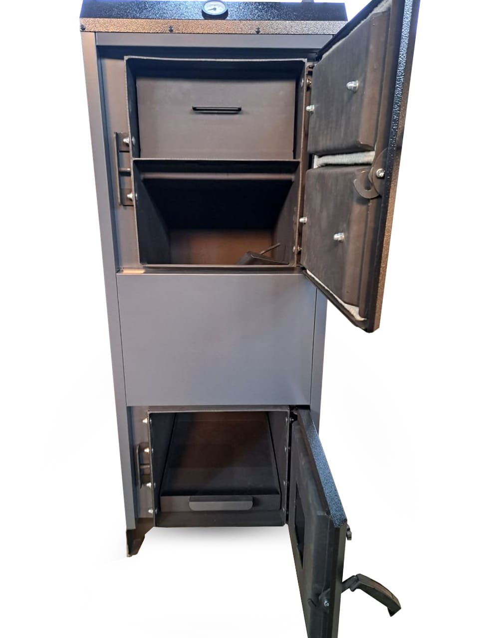- дополнительная камера сгорания для работы котла в ручном режиме в случае отсутствия электричества, пеллета или аварии горелки;