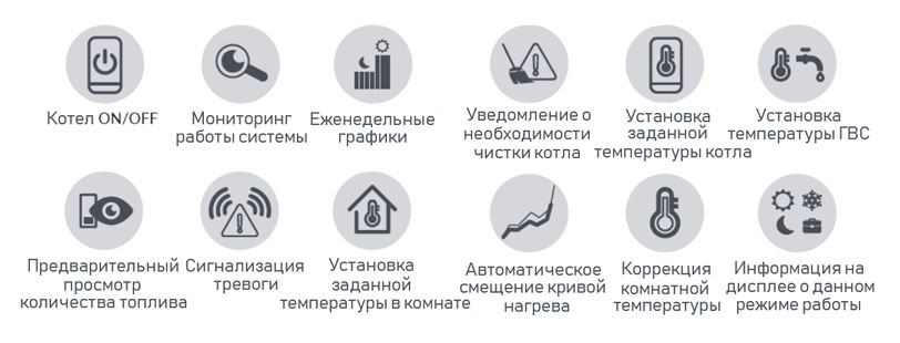 - управление регулятором с помощью мобильных приложений ecoNET.apk и ecoNET.app.