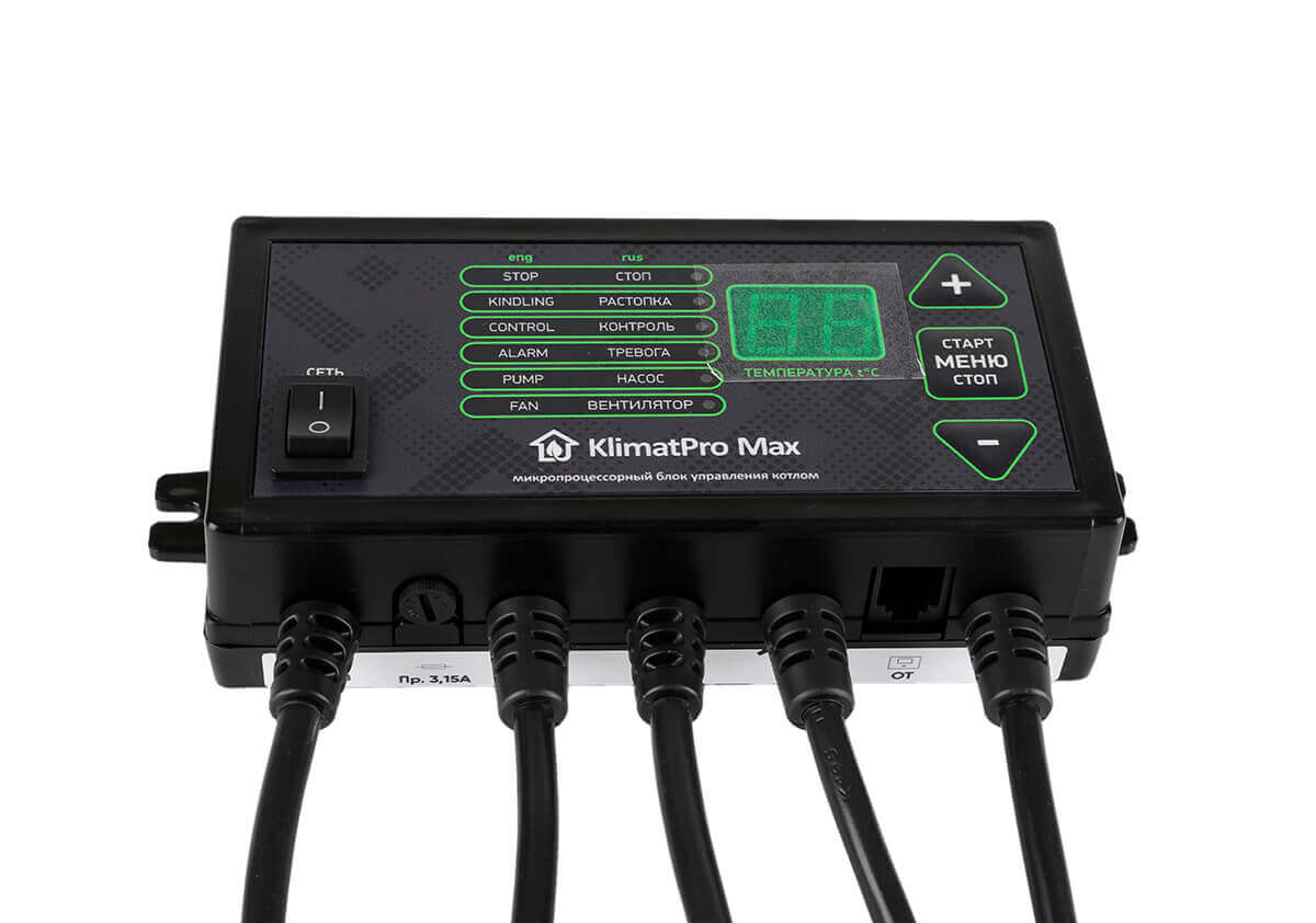 KlimatPro Max — блок автоматики котла отопления — автоматизирует котлы с ручной загрузкой на твердом топливе (уголь брикеты, пеллеты), экономит топливо, повышает комфорт в помещении.