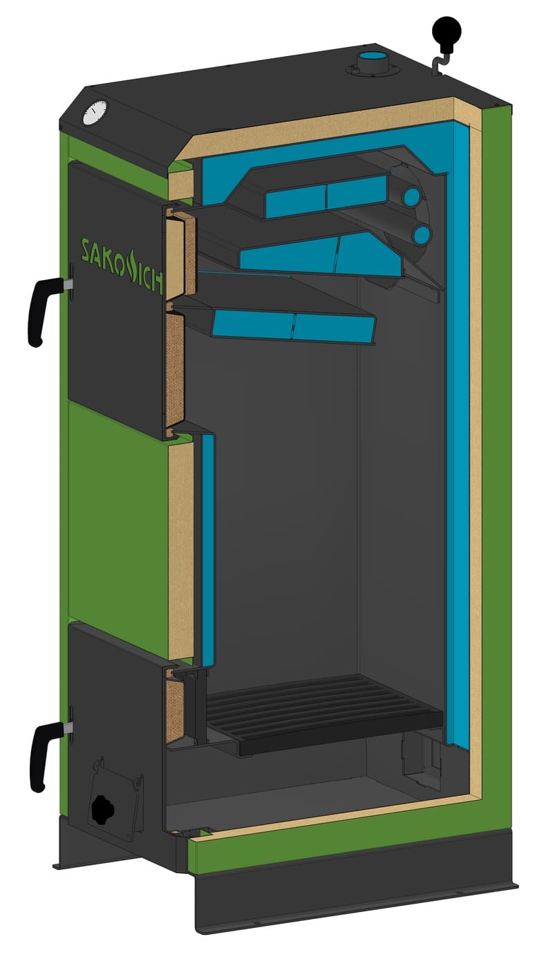 Теплообменник котла выполнен с минимальным количеством сварных швов. Топка из цельного листа котловой стали толщиной 4 мм.