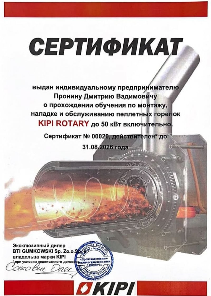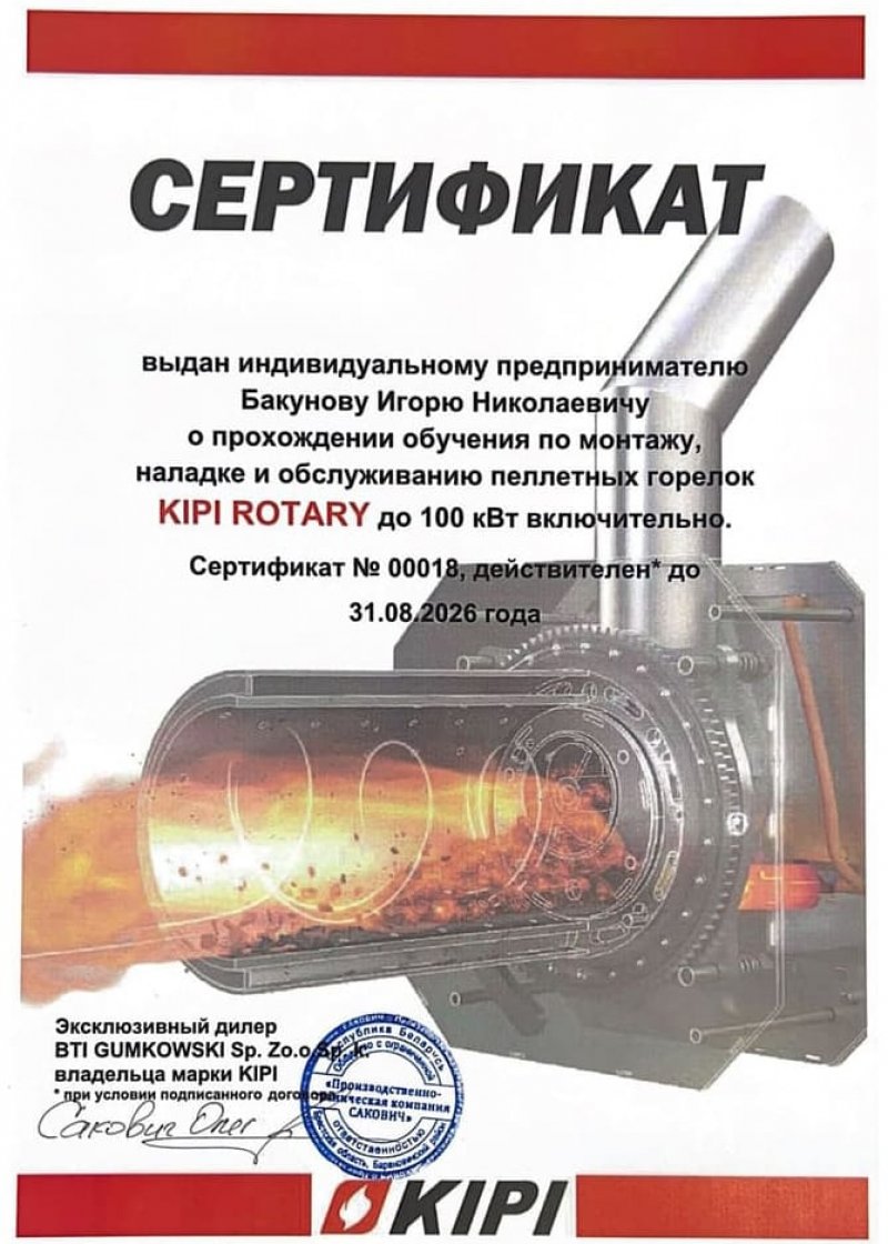 Перечень сертифицированных специалистов по монтажу, наладке и обслуживанию пеллетных горелок KIPI ROTARY